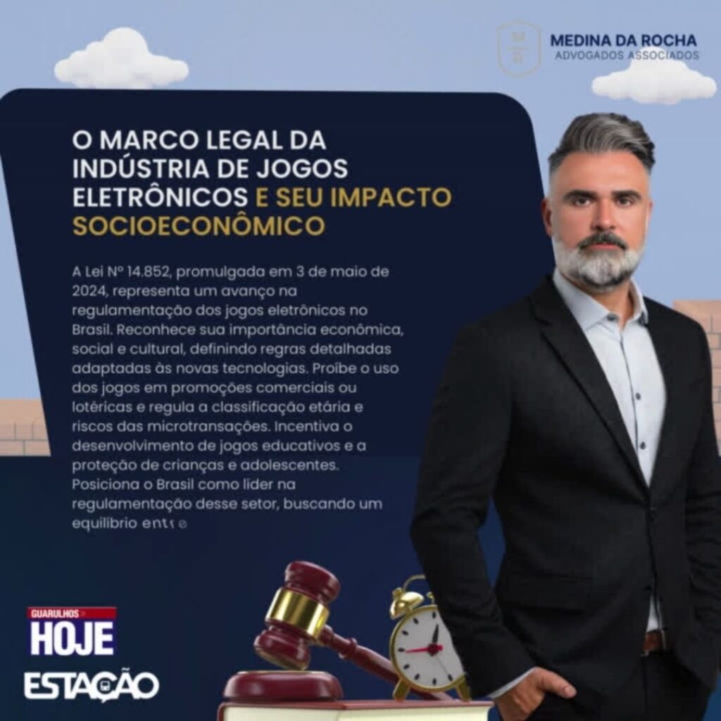 Em 3 de maio de 2024, o Brasil marcou um significativo avanço legislativo com a promulgação da Lei Nº 14.852, instituindo o marco legal para a indústria de jogos eletrônicos. ilEssa legislação pioneira não apenas reconhece a crescente importância deste setor como um pilar essencial para o desenvolvimento econômico, social e cultural, mas também estabelece uma regulamentação detalhada, adaptada às características únicas e ao ritmo acelerado de inovação do campo. A Lei Nº 14.852 abre novos horizontes ao definir o que se compreende por jogos eletrônicos, englobando desde obras audiovisuais interativas desenvolvidas como programas de computador até jogos em realidades alternativas, como virtual, aumentada, mista e estendida. Esta abrangência reflete a complexidade e a variedade do setor, garantindo que a legislação permaneça relevante diante das rápidas evoluções tecnológicas. Importante é a disposição que veda às promoções comerciais ou modalidades lotéricas a utilização das vantagens proporcionadas pela lei aos jogos eletrônicos. Este cuidado legislativo destaca a intenção do legislador de criar um ambiente regulatório que fomente a inovação, ao passo que mantém uma linha clara de separação entre o entretenimento e as apostas, protegendo, assim, um número significativo de consumidores, incluindo menores de idade. Um dos principais avanços trazidos pela lei é o reconhecimento do empreendedorismo inovador em jogos eletrônicos como um vetor crucial de desenvolvimento econômico. Ao estabelecer diretrizes para o fomento ao empreendedorismo e ao investimento em inovação, a lei posiciona o Brasil como um campo fértil para a criação e o crescimento de empresas nacionais no setor de jogos eletrônicos. Ademais, ao regular a classificação etária indicativa e considerar os riscos das microtransações, a lei mostra uma preocupação com o bem-estar dos usuários, especialmente crianças e adolescentes. A inclusão de disposições sobre a formação e capacitação de recursos humanos e o desenvolvimento de espaços formativos especializados para o setor reflete um investimento em capital humano. A lei incentiva a criação de cursos e oficinas profissionalizantes, bem como a pesquisa e o desenvolvimento de jogos eletrônicos educativos, visando a uma integração dessas tecnologias no ambiente escolar e terapêutico. No que tange à proteção de crianças e adolescentes, a legislação é meticulosa, estipulando medidas específicas para assegurar um ambiente seguro e propício ao desenvolvimento saudável dos jovens usuários de jogos eletrônicos. A criação de canais de diálogo e escuta, junto às medidas de supervisão parental e moderação, destaca o esforço em equilibrar as liberdades de acesso à tecnologia com a proteção dos direitos desse público vulnerável. Além disso, a alteração de legislações anteriores para integrar os jogos eletrônicos nos contextos de cultura e inovação mostra um esforço de atualização e sincronização dos textos legais com as realidades do século XXI. Este movimento legislativo não apenas reconhece os jogos eletrônicos como uma forma legítima de expressão cultural, mas também os coloca como um pilar no fomento da cultura nacional. Assim, a Lei Nº 14.852 não é apenas uma peça legislativa; é uma declaração de visão de futuro e uma estratégia bem articulada de desenvolvimento nacional. Com ela, o Brasil se posiciona na vanguarda da regulamentação de uma das mais dinâmicas e inovadoras formas de entretenimento e arte, promovendo um equilíbrio entre crescimento econômico, proteção ao consumidor e incentivo cultural. Esta lei representa um passo significativo na evolução do direito brasileiro em resposta aos desafios e oportunidades da era digital. Baixe aqui o artigo publicado em 07/05/2024 Clique aqui para baixar o PDF Clique aqui ACESSAR A MATERIA Clique aqui para baixar o PDF Clique aqui ACESSAR A MATERIA