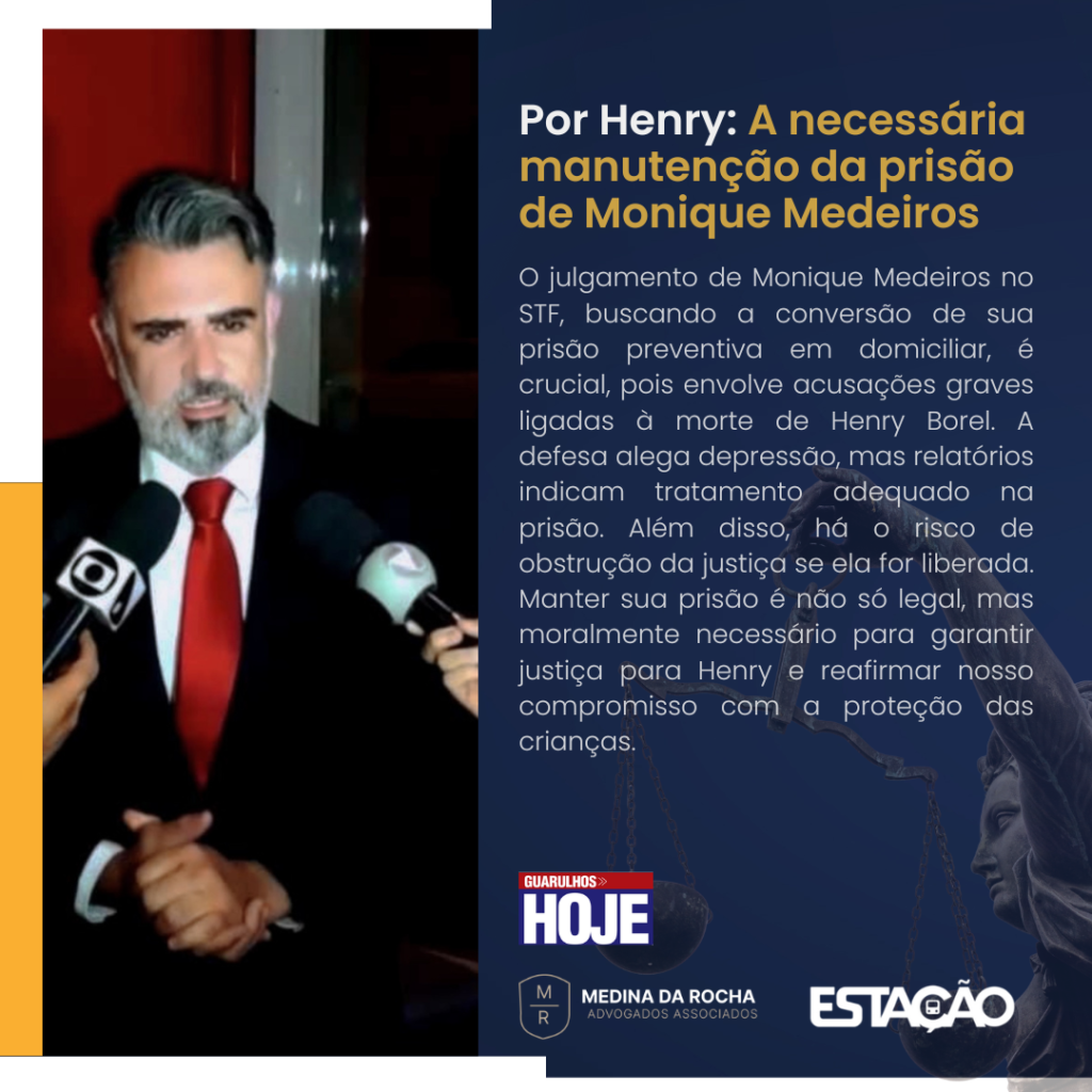 A partir do dia 26 de abril, o Supremo Tribunal Federal (STF) dará inícioao julgamento de Monique Medeiros da Costa e Silva de Almeida, comum foco crítico: a tentativa de conversão de sua prisão preventiva em domiciliar. Este julgamento não é apenas uma mera formalidade processual; é o coração pulsante de um caso que abalou as estruturas emocionais e éticas da sociedade brasileira. Monique e seu então companheiro, Jairo Souza Santos Júnior, enfrentam acusações severas ligadas ao trágico falecimento de Henry Borel, um menino de apenas quatro anos de idade. Monique está sendo acusada nos termos do art. 121, § 2º, incisos I e IV, e § 4º, na forma do artigo 13, § 2º, alínea “a”, c/c artigo 61, inciso II, alíneas “e” e “f”, e do artigo 344, todos do Código Penal, além do art. 1º, II c/c § 2 e § 4º, da Lei nº 9455/97, por duas vezes. Jairo enfrenta acusações sob o art. 121, § 2º, III e IV, e § 4º, na forma do art. 18, I, parte fi nal, c/c 61, II, “f” e 344, todos do Código Penal e art. 1º, II e § 4º, II, da Lei nº 9455/97, por três vezes. A gravidade e complexidade dessas imputações refletem a seriedade com que o sistema judicial está tratando o caso.Um dos argumentos centrais para a manutenção da prisão preventiva de Monique reside na natureza hedionda dos crimes pelos quais elaestá sendo julgada. A morte de Henry não foi apenas uma tragédia; foi um ato que, segundo a acusação, envolveu tortura e maltrato extremo,ocorridos dentro do próprio lar da vítima, supostamente perpetrados por aqueles encarregados de sua proteção e cuidado.Ademais, a defesa de Monique alega que sua cliente sofre de depressão e por isso requer a conversão da prisão preventiva em domiciliar. No entanto, informações fornecidas pela Secretaria de Administração Penitenciária (Seap) do Rio de Janeiro e por relatórios psicológicos indicam que Monique está recebendo tratamento adequado dentro do sistema penitenciário.Ela tem acesso a acompanhamento psicológico regular, onde foi descrita como “lúcida e orientada”, e participa de atividades de reintegração e apoio emocional, garantindo-se assim a sua integridade física e mental. Essas medidas asseguram que Monique está sendo tratada de forma humanitária e com a atenção devida à sua saúde mental, o que anula a necessidade de uma prisão domiciliar baseada em argumentos de condição psicológica. Além disso, a prisão preventiva se justifica plenamente pelos riscos de obstrução da justiça, como já foi evidenciado pela tentativa de Monique em influenciar testemunhas e manipular evidências. Sua liberação poderia comprometer não apenas a integridade do processo judicial,mas também prejudicar a busca pela verdade no caso que toca profundamente a consciência pública. Diante desses fatos, é imperativo que o recurso da defesa seja negado e que a prisão preventiva de Monique Medeiros seja mantida. A liberação nesta fase poderia não apenas comprometer o processo judicial, mas também enviar uma mensagem alarmante de leniência em face decrimes de uma natureza particularmente vil e repugnante. O STF, portanto, encontra-se diante de uma responsabilidade grave: assegurar que ajustiça seja feita de maneira fi rme e intransigente, em nome de Henry e da integridade do sistema judicial brasileiro. Como assistente de acusação, é doloroso testemunhar a extensão do mal que foi infligido a uma criança inocente, e é nosso dever soleneassegurar que justiça seja feita. Manter Monique Medeiros em prisão preventiva não é apenas uma medida legal, é um imperativo moral,uma afirmação de que como comunidade, nós valorizamos cada vida jovem e que nós lutamos incansavelmente contra aqueles que tentamsubverter a justiça. Por Henry, e por todas as crianças que dependem de nós para sua segurança e bem-estar, não podemos falhar. A decisão do STF tem opeso não apenas de manter a ordem e a justiça, mas também de reafirmar nosso compromisso coletivo com os princípios de humanidade eresponsabilidade. Baixe aqui o artigo publicado em 23/04/2024 Clique aqui para baixar o PDF Clique aqui ACESSAR A MATERIA Clique aqui para baixar o PDF Clique aqui ACESSAR A MATERIA